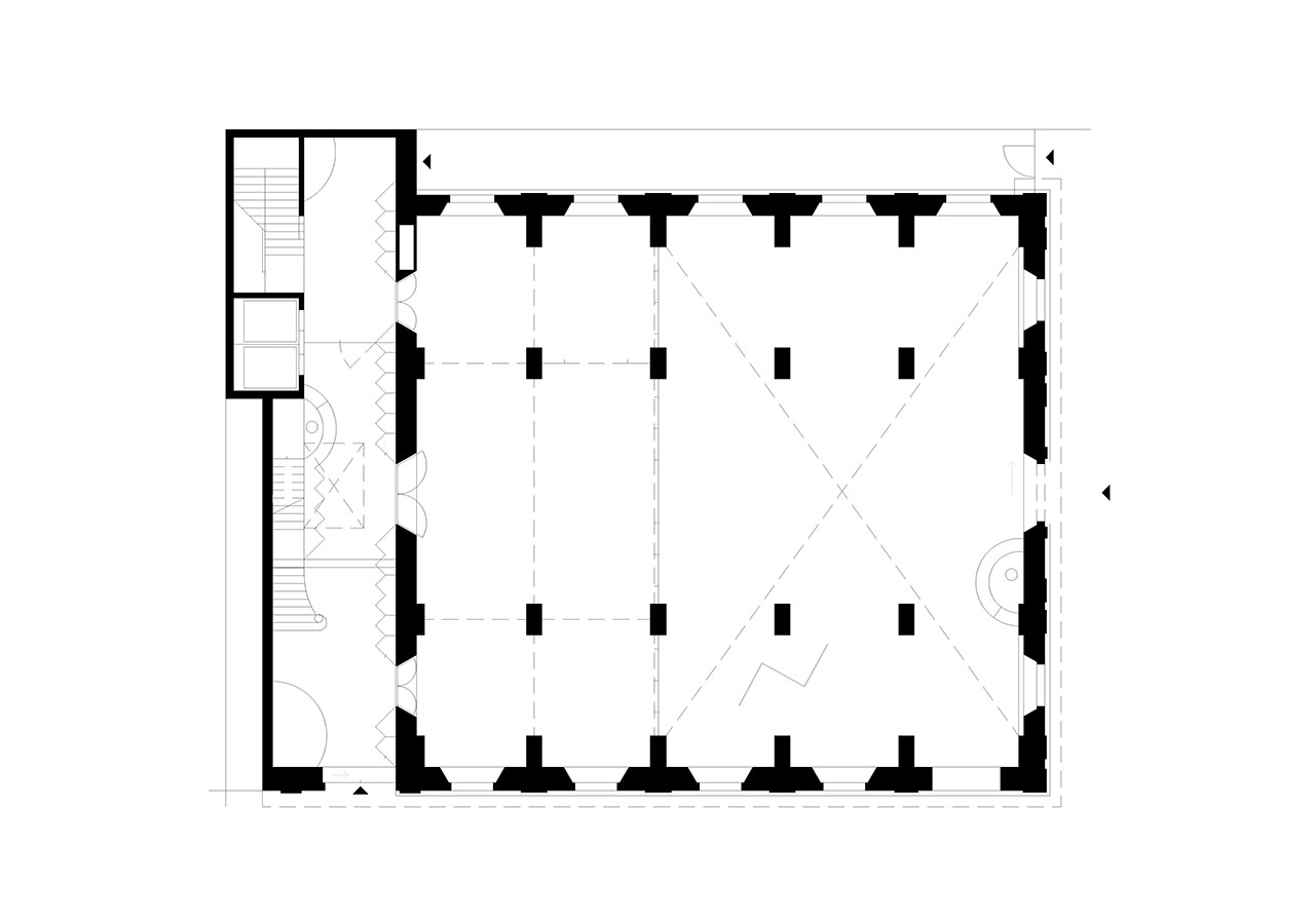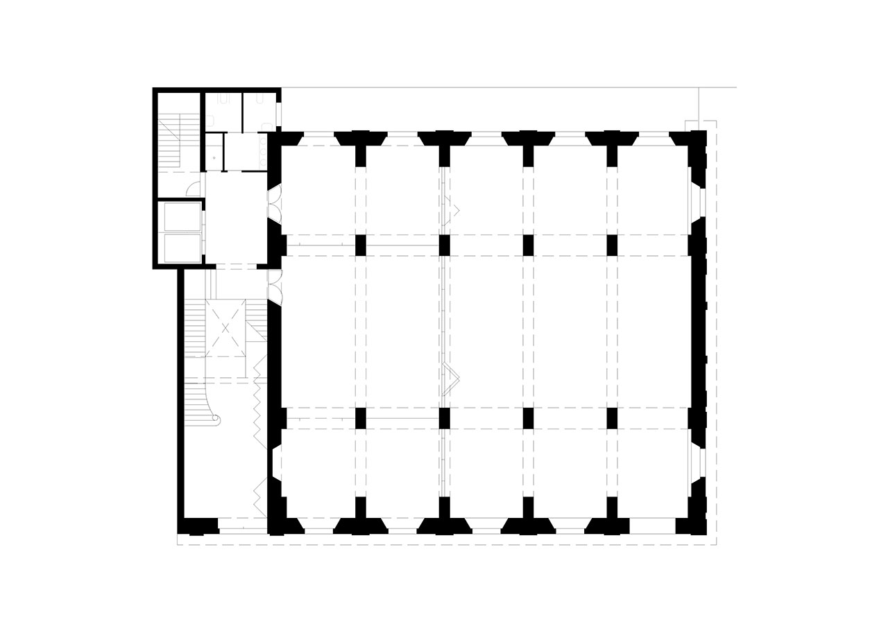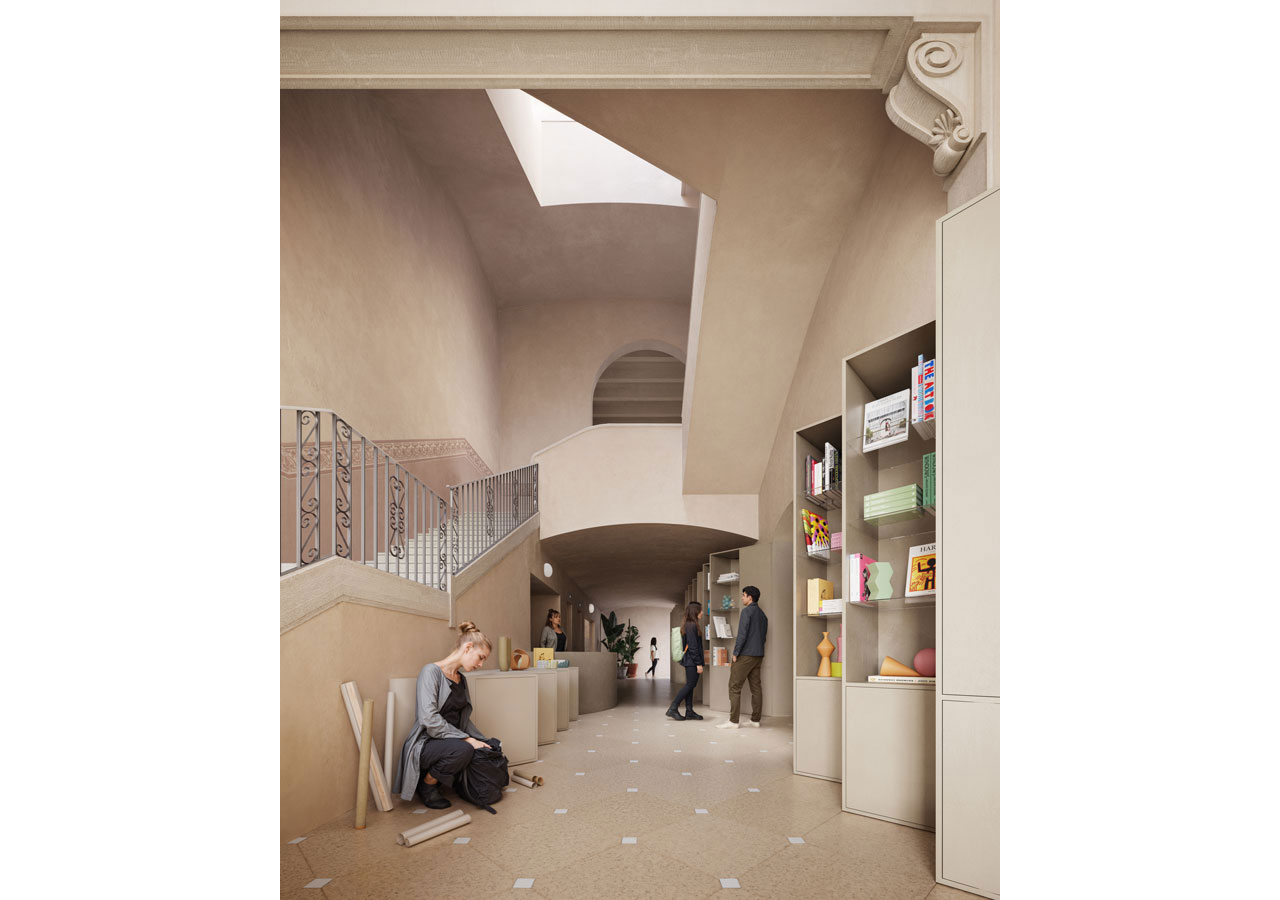 Following the sequence of the building's main levels, the transformation preserves the independence of the upper floors from the great hall, clearly separating the two types of use. The skylight in the central courtyard is replaced with a climatic device located on the second floor, transforming the courtyard into a large indoor atrium. The project partially removes the ironwork on the third floor, which dignifies the central spaces of the level occupied by classrooms and workshops.