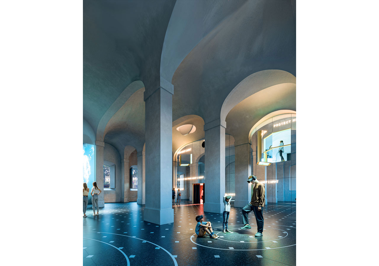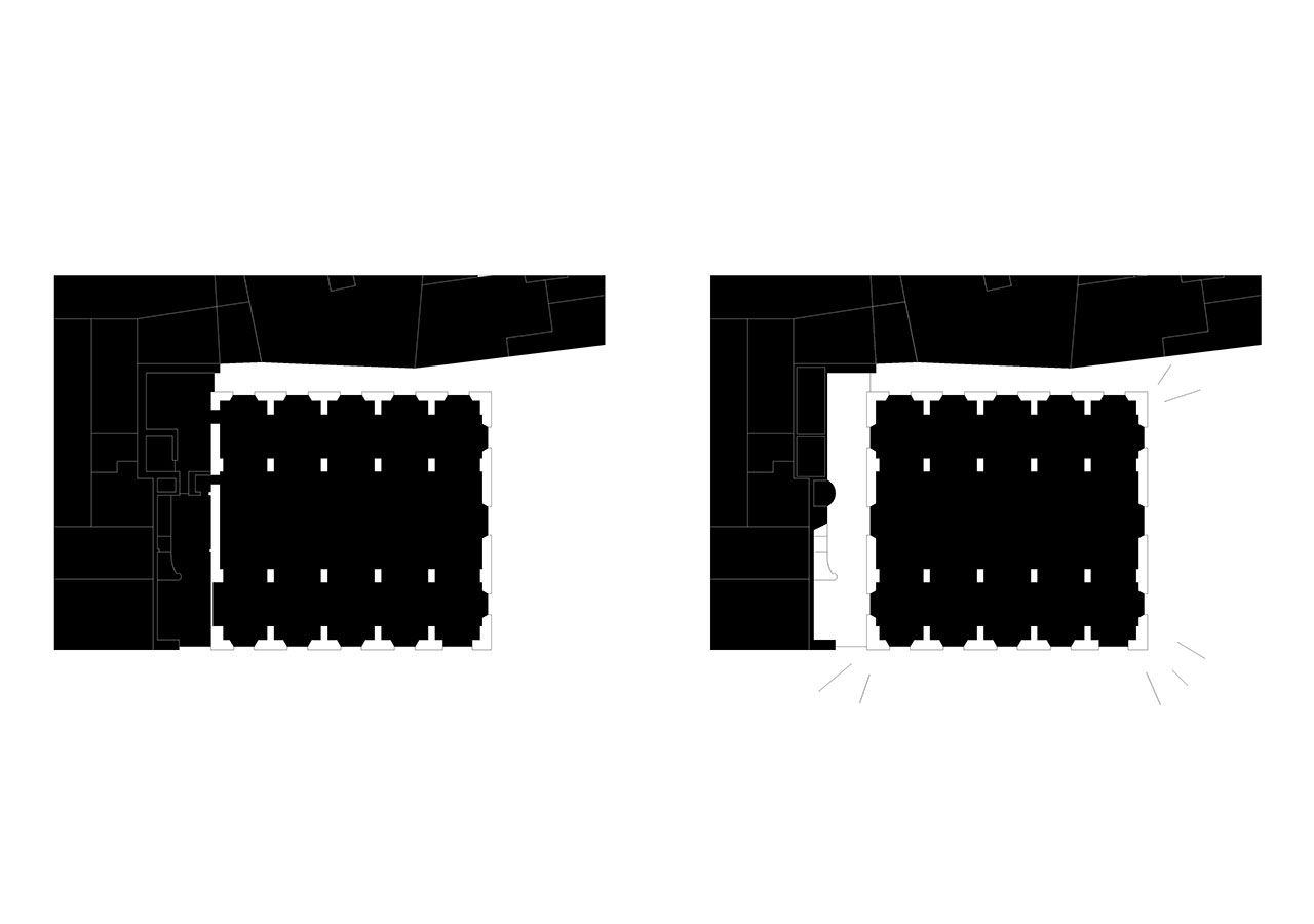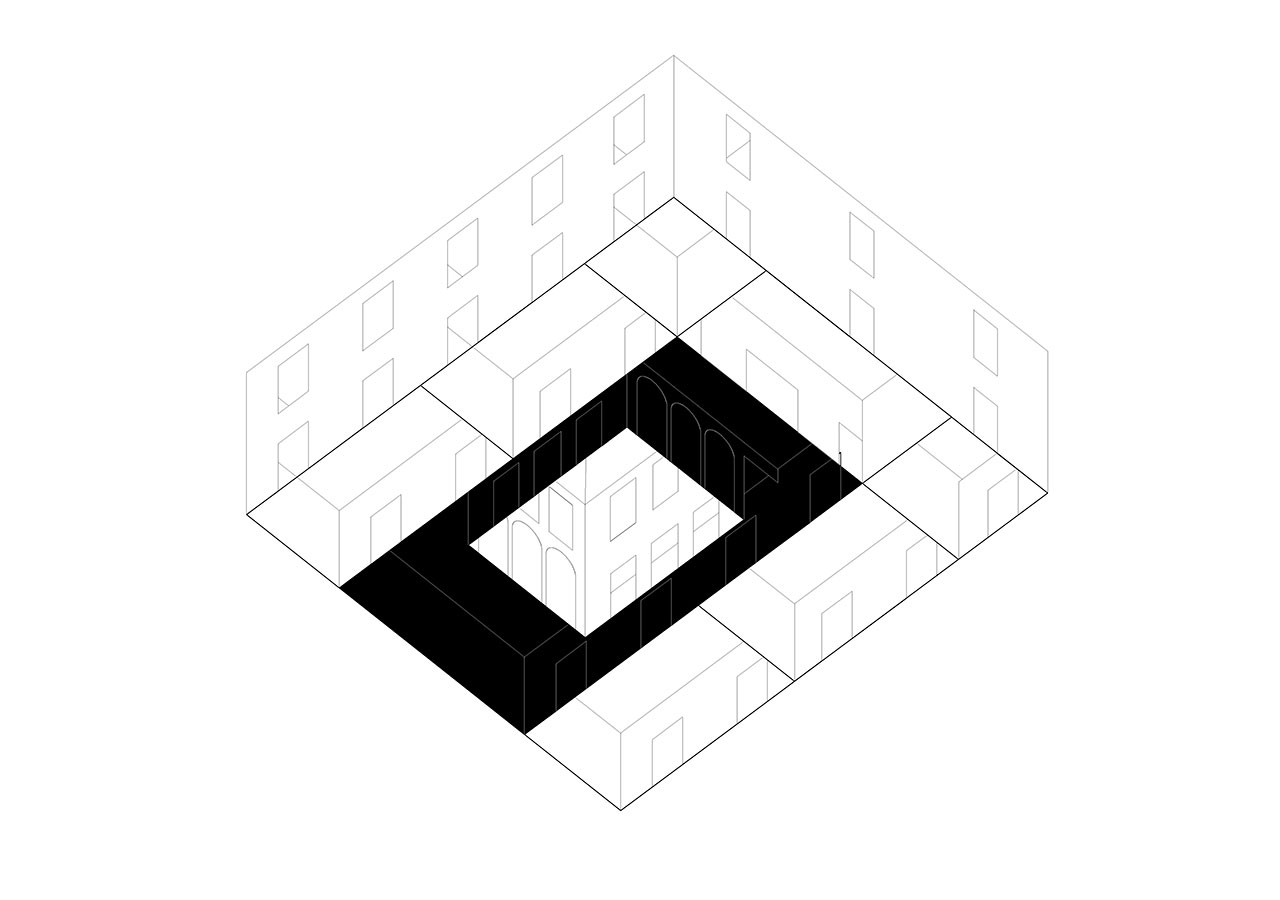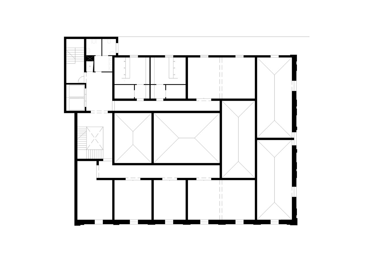 Following the sequence of the building's main levels, the transformation preserves the independence of the upper floors from the great hall, clearly separating the two types of use. The skylight in the central courtyard is replaced with a climatic device located on the second floor, transforming the courtyard into a large indoor atrium. The project partially removes the ironwork on the third floor, which dignifies the central spaces of the level occupied by classrooms and workshops.