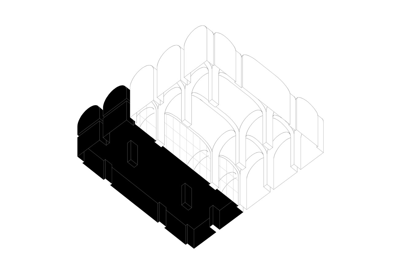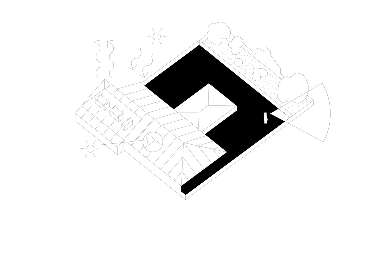 This intervention is based on three new devices: a large reflective screen reconstructs the image of the Foundry in all four directions; and behind it, the closed-off rooms are set up as multipurpose halls; a skylight located in the atrium of the workspace regulates the inflow of natural light, provides heat to the renovation system in winter and dispels it in summer; and a solar energy production roof creates a large porch on the terrace of the bar that looks out towards the sea.