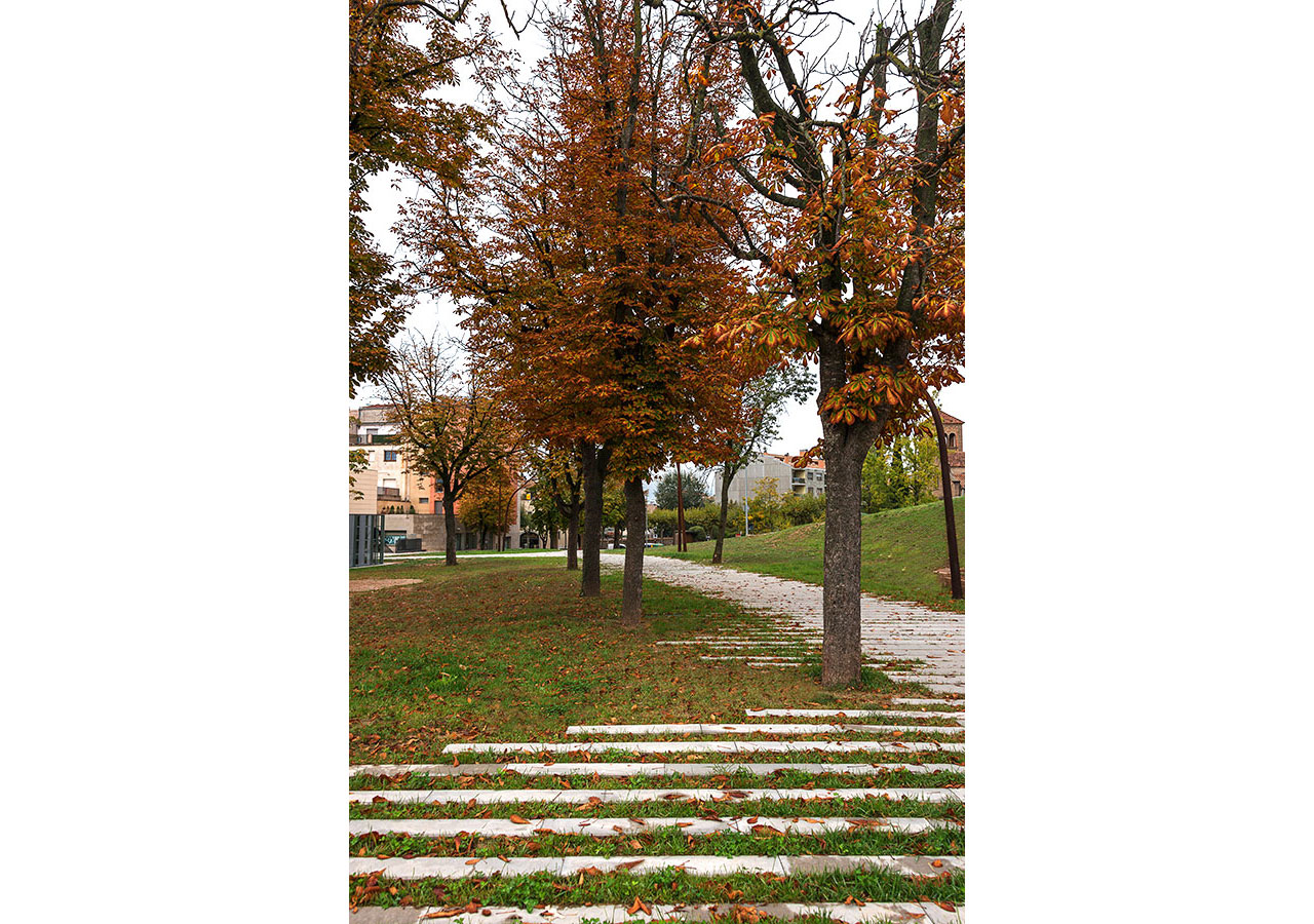 El projecte recupera el jardí històric respectant la topografia i els arbres existents que formen part de l’imaginari col·lectiu. Es restaura el tapís verd sobre el qual es col·loca un paviment seguint l’eix passeig-equipaments, creant un camí sinuós que acompanya el vianant diluint-se al llarg del recorregut. La vegetació, d’aparença no domesticada, i els accidents del terreny han estat conservats i explotats per tal d’aconseguir un caràcter pintoresc, que posa en valor les preexistències del lloc. Segons l’estació de l’any el parc ofereix sensacions i vistes diferents. La metamorfosi dels elements crea un lloc constantment renovat.